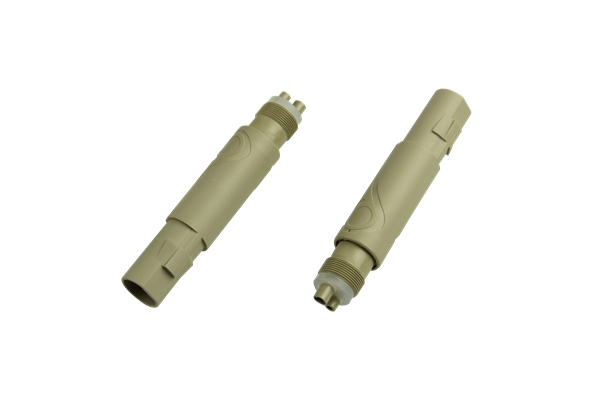 Plastic, standard 4-hole coupler.